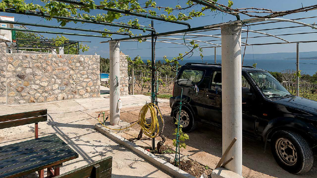Kuća je udaljena od mjesta Bol 2 km, na osami sa vlastitim parkingom, terasom, vrtom za djecu.