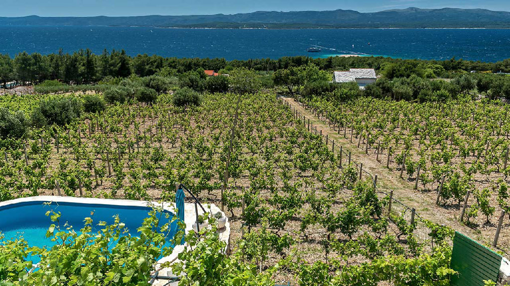 Kuća za odmor u vinogradu u Bolu, na otoku Braču, smještena 200 metara od čuvene plaže Zlatni Rat, sa privatnim bazenom,