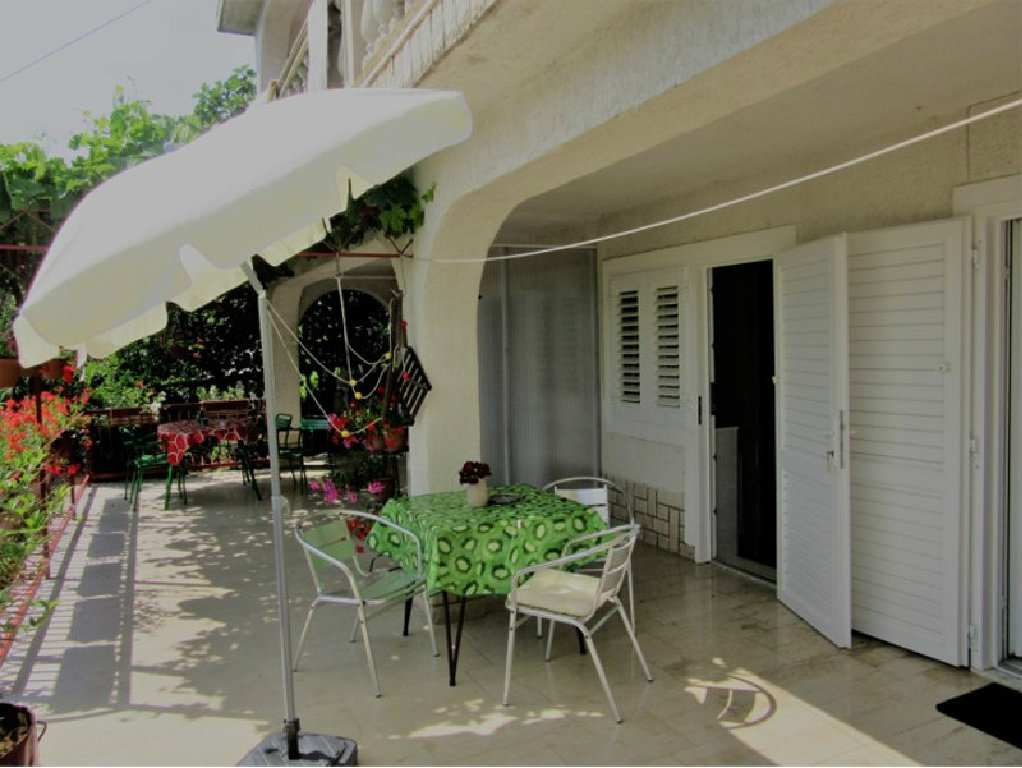 Ima kupaonicu sa kadom i posebnim wc-om, velika terasa s prekrasnim pogledom na vrt i more, blizina plaže, parking uz kuću, grill, Wi-Fi, posteljina, ručnici.