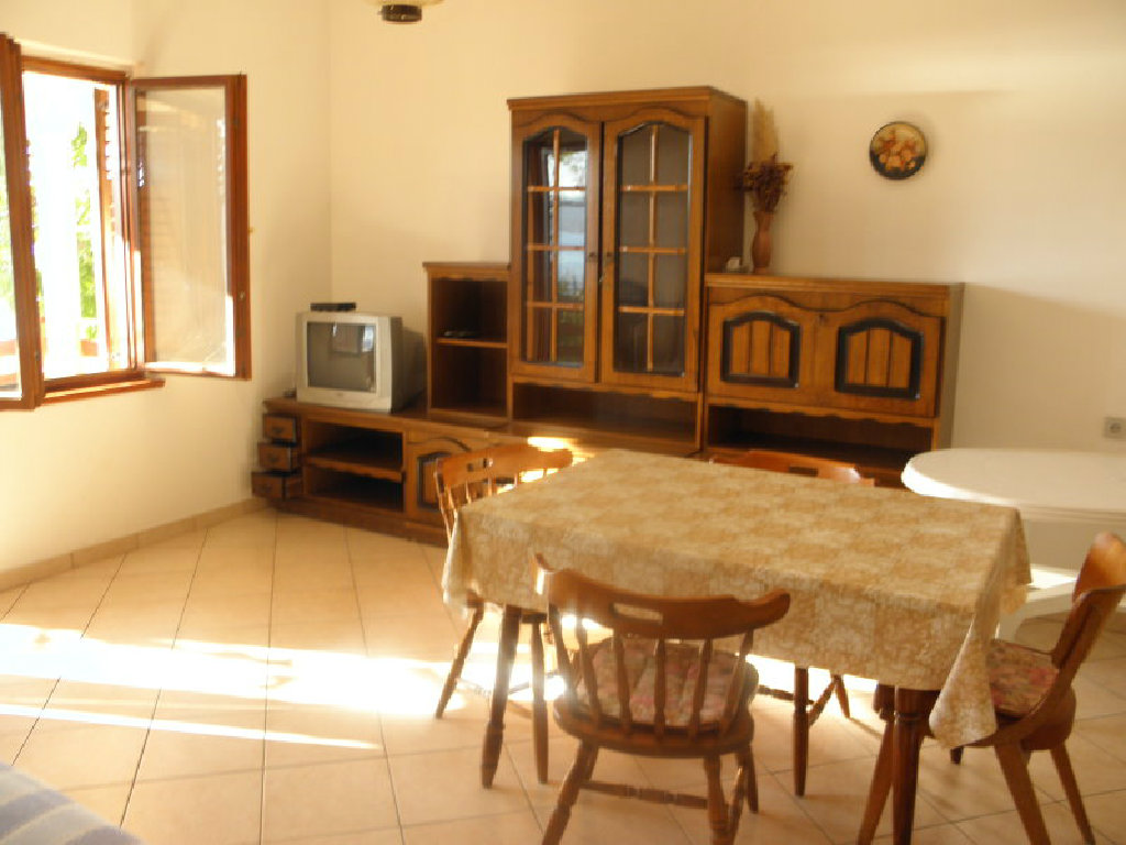 Apartman A4 nalazi se na visokom prizemlju, ima 45 kvadratnih metara, spavaću sobu s bračnim krevetom, kupaonicu s velikom kadom, dnevni boravak s kuhinjom i krevet za 1 odraslu osobu ili 2 male djece i terasu s pogledom na more.