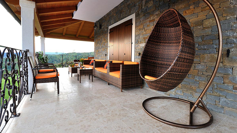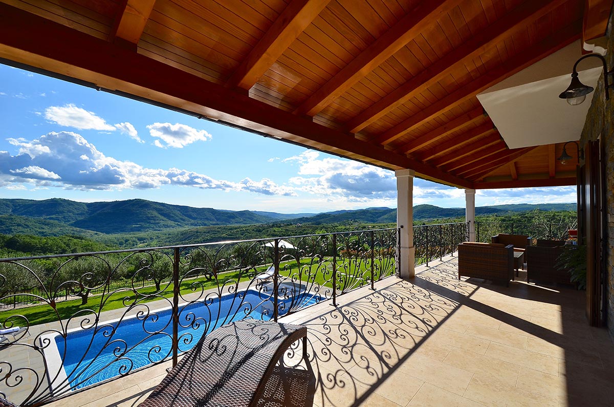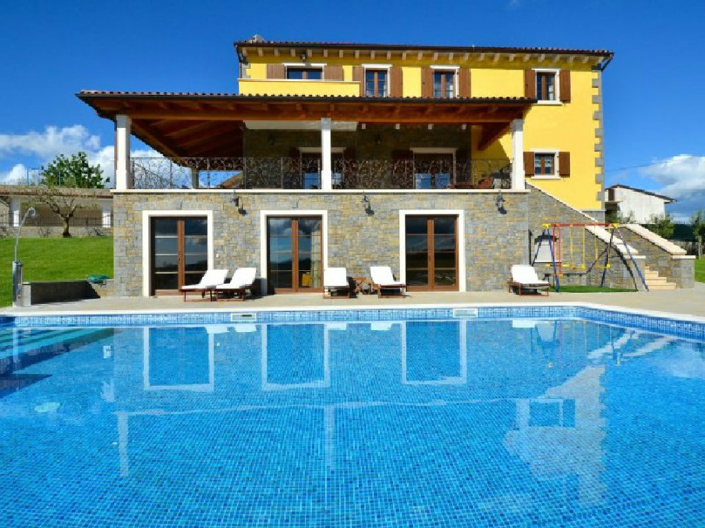 Poželite li osvježenje u toplim ljetnim mjesecima, tu je i vrtni bazen površine pedeset kvadratnih metara s mogučnošću grijanja te s hidromasažnim pumpama. Sunčeve zrake možete hvatati na jednoj od dvanaest ležaljki, a poželite li manje osunčano mjesto, pobjegnite u hladovinu jedne od maslina. Dok bezbrižno uživate u pogledu na jezero i okolne stoljetne šume vaši najmlađi će se zabavljati na klackalici ili ljuljački. Na raspolaganju su vam i četiri bicikla. U vrtu se nalazi i natkrivena kuhinja opremljena kaminom, kuhalom na plin, sudoperom, frižiderom i stolom za dvanaest osoba. Ovdje gosti mogu kušati istarske specijalitete koje će pripremiti sami ili, pak, pod stručnim vodstvom.
