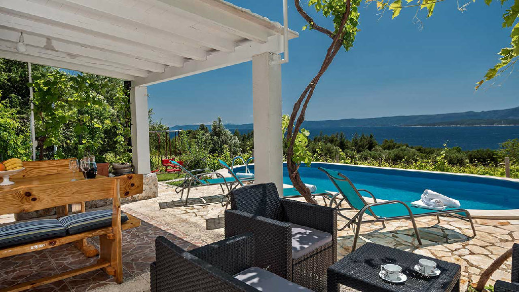 Ferienhaus mit privatem Pool in Bol auf Brac, geeignet für bis zu 5 Personen.