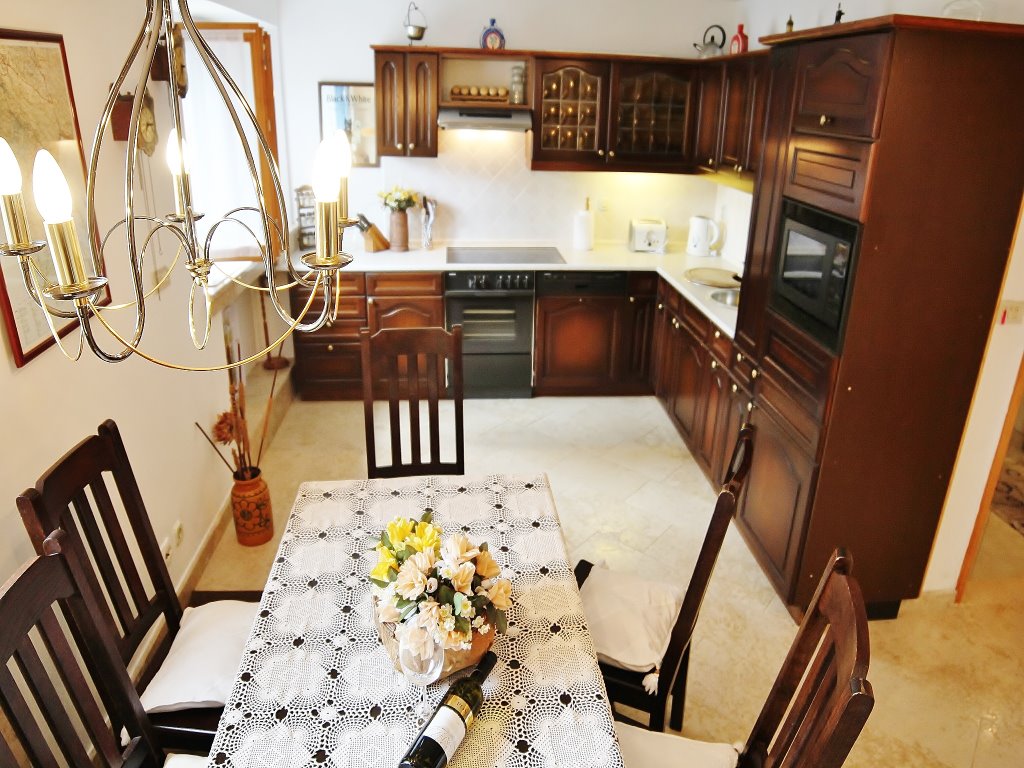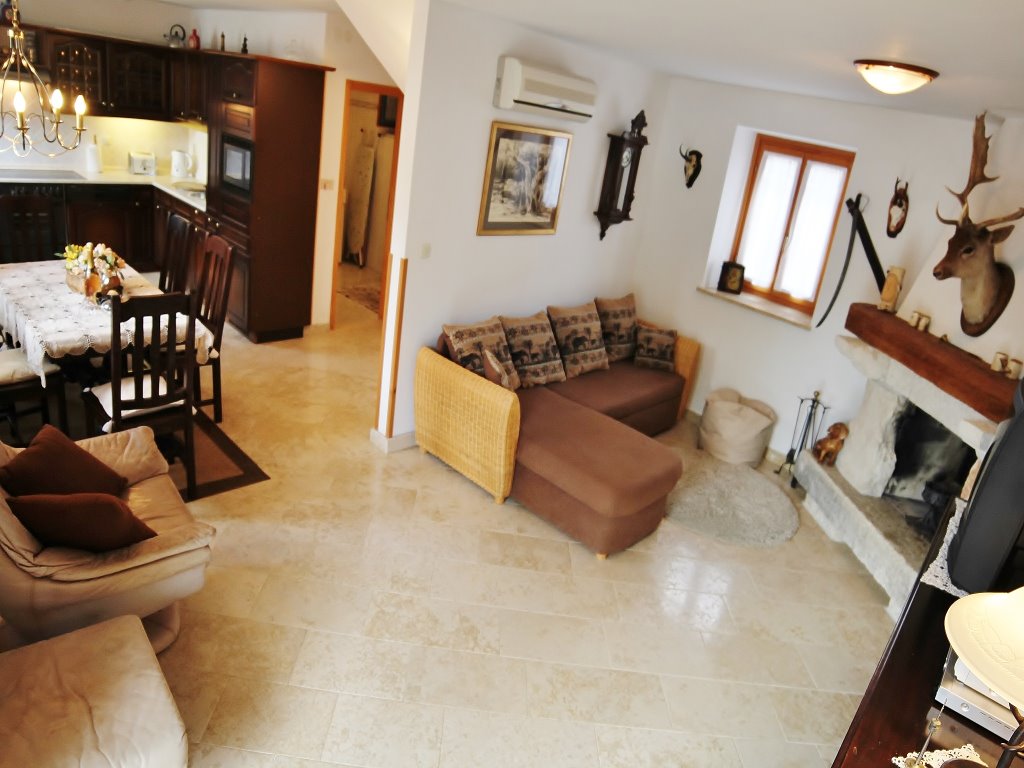 Das Haus "MIRIAM" ist ca 128 m² gross und für 6-7* Personen geeignet. Es besteht aus einem EG und zwei OG-en. Im EG befinden sich ein Wohn-/Esszimmer, ein offener Kamin, eine Klimaanlage, TV, SAT-Antenne, DVD, eine große, komplett ausgestattete Einbauküche (Spülmaschine, E-Herdplatte, E-Ofen) und ein Bad mit Dusche (Waschmaschine). Im 1. OG sind zwei Schlafzimmer(Ventilator) mit Doppelbett und mit jeweils eigenen Bädern. Im 2. OG befindet sich dann noch ein Schlafzimmer, Ventilator) mit Doppelbett und Bad, ein Wohnzimmer mit Schlafmöglichkeit und eine Kochnische. Zu dem Haus gehört eine überdachte Terrasse, ein Grillplatz, ein Backofen aus Stein und ein kleines Poolhäuschen mit offenem Kamin zum gemütlichen Zusammensitzen. Ein Swimmingpool mit Außendusche steht Ihnen zur Verfügung; gemeinschaftliche Nutzung des Pools mit Haus Domagoj.