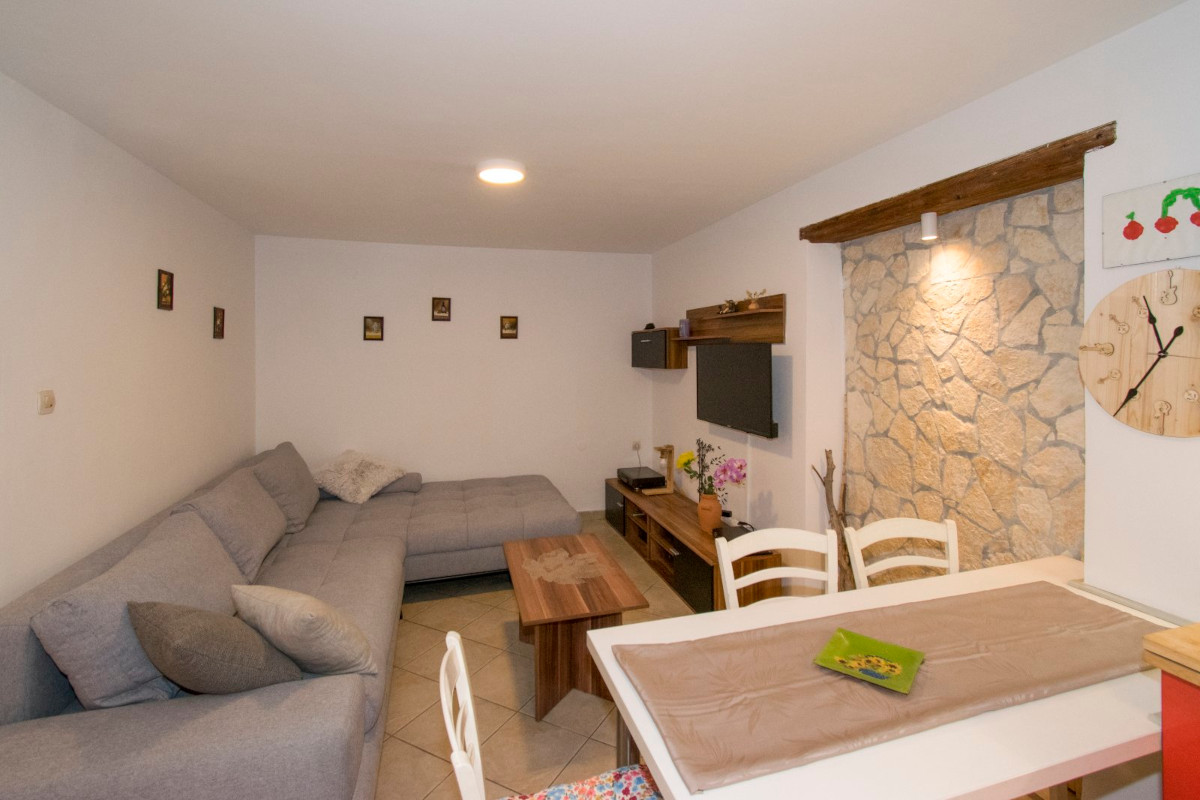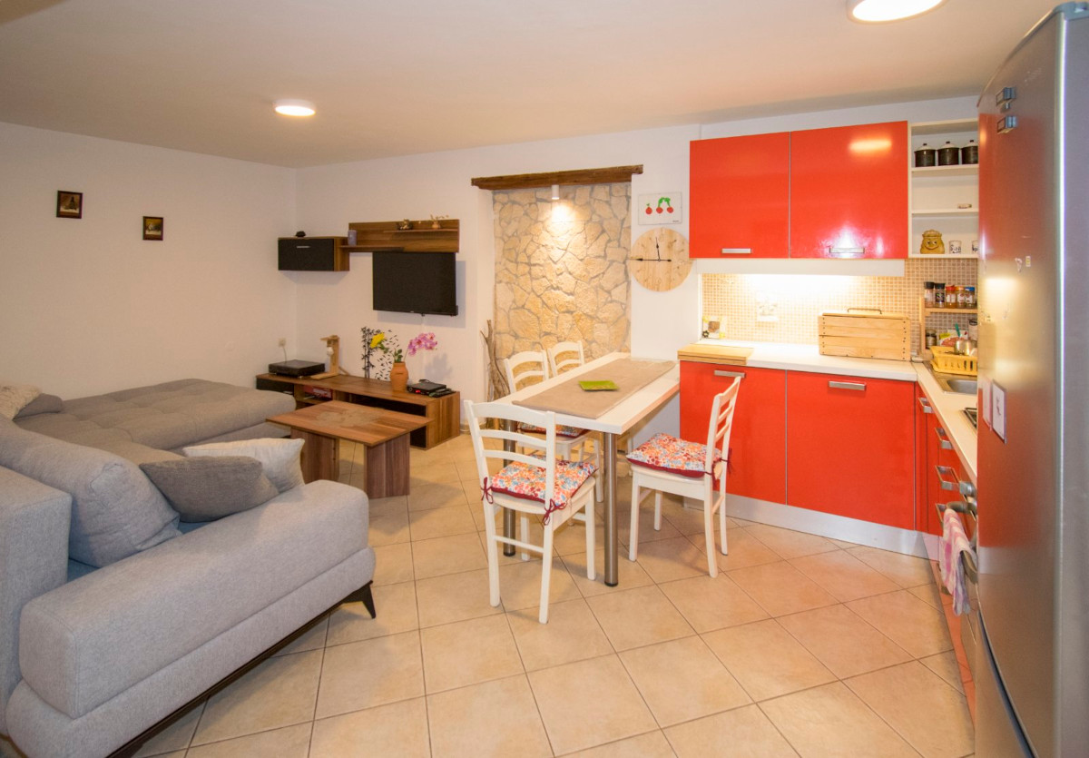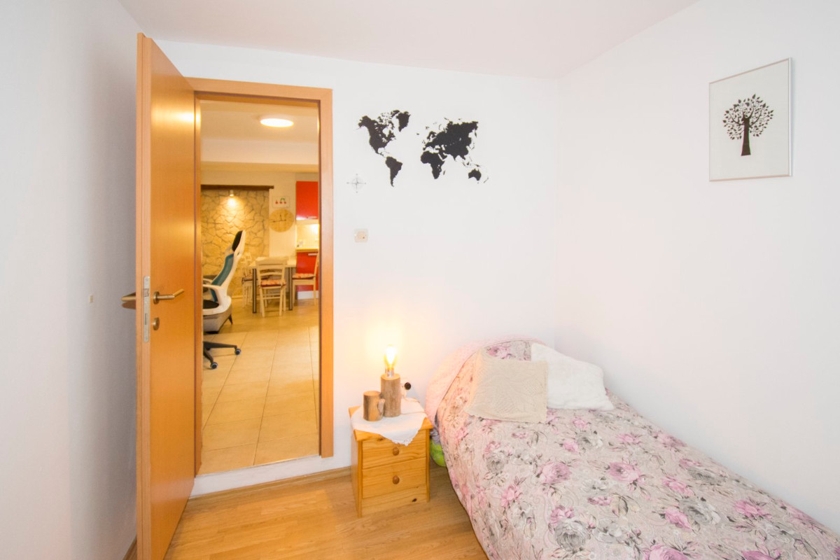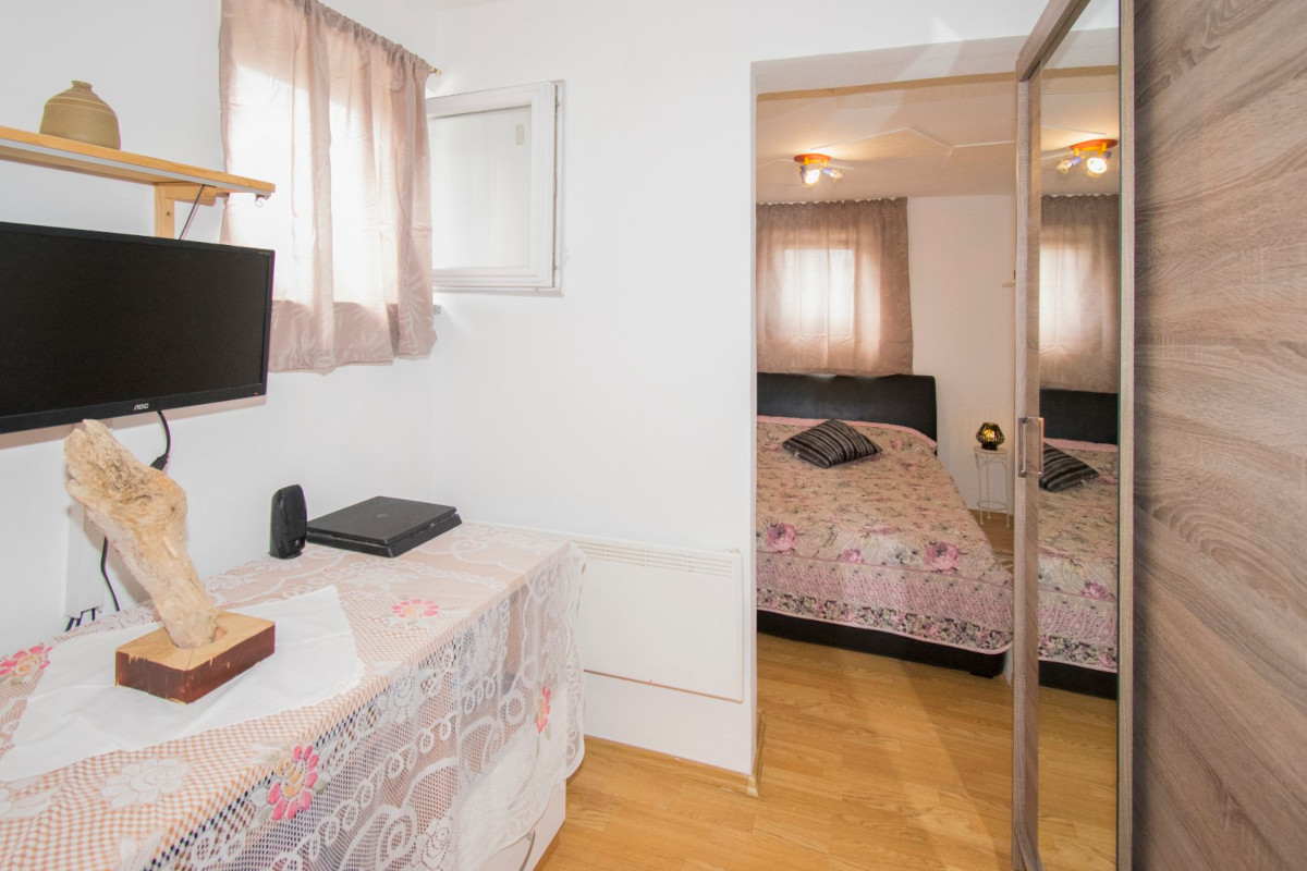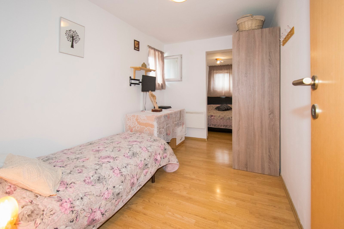Das Apartment befindet sich ebenerdig und besteht aus Wohn-Küchenbereich, 2 Schlafzimmer, Bad.