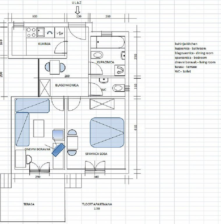 Das Apartment befindet sich in Selce, in der Nähe von Crikvenica, und ist geeignet für 2+2 Personen.