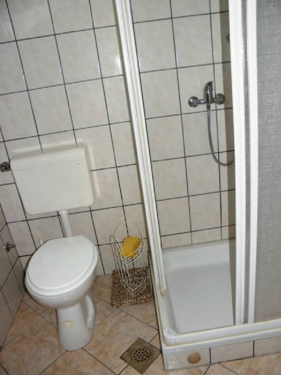Apartment A2 befindet sich auf der Etage des Hauses, 46 m² groß, mit einer überdachten Terrasse von 10 m², und hat ein Schlafzimmer mit Doppelbett, Bad mit Dusche, Wohnzimmer mit Küche und ein Bett für 1 Erwachsenen oder 2 kleine Kinder und eine Terrasse mit Blick auf das Meer.
