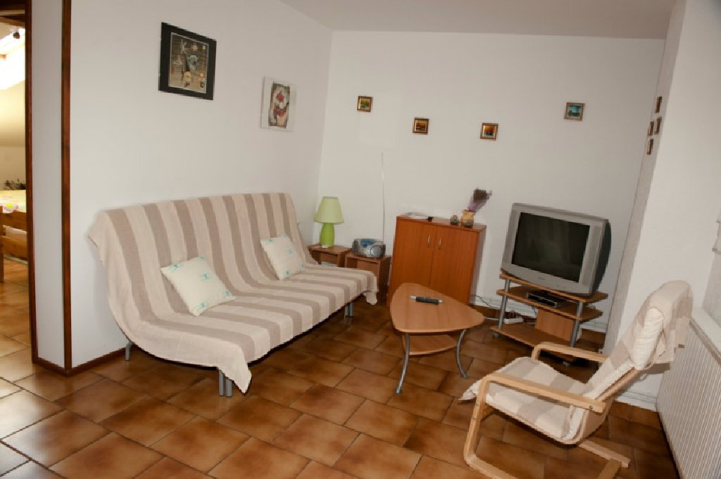 Die Wohnung ist 80 qm groß und besteht aus: Küche, Schlafzimmer mit Doppelbett, ein zweites Schlafzimmer mit 2 Eizellbetten, Badezimmer mit Dusche und Bidet, Wohnzimmer mit Schlafsofa für 2 Personen und eine große überdachte Terrasse.